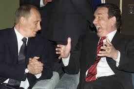 O ex-chanceler federal da Alemanha Gerhard Schröder(na imagem com Putin) foi nomeado para integrar o conselho de administração da poderosa estatal energética russa Gazprom, a empresa anunciou no dia 04-02-2022) (mais aqui https://www.dw.com/pt-br/ex-chanceler-alem%C3%A3o-schr%C3%B6der-assumir%C3%A1-cargo-na-estatal-russa-de-energia-gazprom/a-60667974 ) -------------Entretanto em Março,semanas após o início da invasão russa o governo alemão procurou então alternativas à energia russa,ver link abaixo